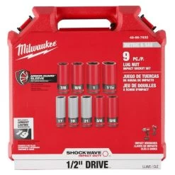 Milwaukee SHOCKWAVE Impact Dutyâ„¢ 1/2 Drive SAE & Metric 9PC Lug Nut Wheel Socket Set 49-66-7832