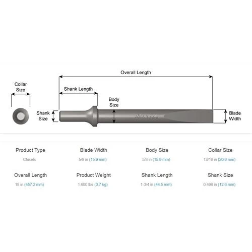 Ajax Flat Air Hammer Chisel 5/8×18″ .498 Shank A960-18