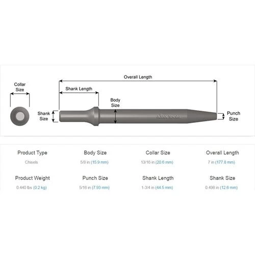 Be the first to review “Ajax Tapered Punch 7 Air Hammer Chisel .498 Shank A961” Cancel reply