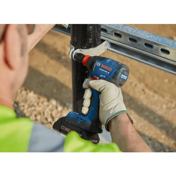The Bosch Freak is half driver, half wrench, all impact. The GDX18V-1860C Two-in-One 1/4 In. and 1/2 In. Bit/Socket Impact Driver delivers results, with the two-in-one bit/socket drive that offers a 1/4 In. quick-change hex shank for bits, and a 1/2 In. square drive for sockets. The two-in-one bit/socket drive increases both convenience and power. Bits can stay conveniently inserted when using deep sockets, and more torque is transferred directly thru the 1/2 In. square drive anvil. There is no more torque loss through socket adapters or broken socket adapters. The impact driver’s efficient, powerful brushless motor produces up to 1,860 In.-Lbs. of torque and 0-4,100 impacts per minute. In addition to three speed/torque settings this impact driver also features special modes to prevent work piece and fastener damage. The presets include modes for self-drilling metal screws and wood screws.