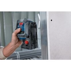 The Bosch GCL100-40G Green Beam Self-Leveling Cross-Line Laser with Plumb Points uses green-beam technology; which emits green lines and points up to 4X brighter than standard red beams. This gives the laser a working range for the lines of up to 165 Ft. The laser produces vertical; horizontal; cross-line modes; as well as upward and downward green plumb points. The tool can project two lines independently or together; for a broad array of alignment and leveling applications.