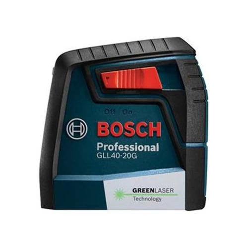The Bosch GLL40-20G Self-Leveling Cross-Line Laser projects visible green laser lines; which are up to 4X brighter than standard red beams. With a Compact 40 Ft. cross-line laser design; the GLL40-20GG features green beams for visibility; self-leveling technology for accuracy and VisiMax for brightness.