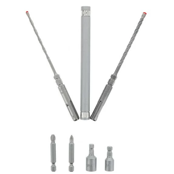 Diablo’s concrete anchor drive set is one of the strongest, most durable, and fastest installation sets. Diablo’s full-carbide head concrete anchor hammer drill bits withstand the stress of high-powered hammer drills and the impact of rebar cutting, delivering extreme durability and strength. The Phillips drive bits and magnetic nut setters deliver maximum performance and extreme durability in driving hex nuts or self-tapping screws. A magnetic anchor drive sleeve delivers the stability and rigidity necessary for precise setting of screws and anchors. Optimized for maximum performance in corded and cordless SDS-Plus rotary hammers.