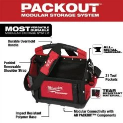 Part of the industry’s most versatile and most durable modular storage system, the Milwaukee PACKOUT 15 inch storage tote features an impact resistant molded base that fully integrates with all PACKOUT system components. Constructed with 1680D ballistic material and all metal hardware, the 15 inch storage tote is designed for ultimate durability while the included padded should strap and durable overmolded handle allow for easy transport.