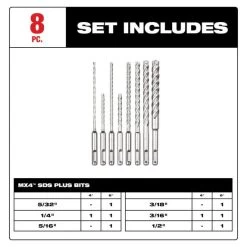 8pc. SDS Plus MX4 4-Cutter Drill Bit Kit 48-20-7663