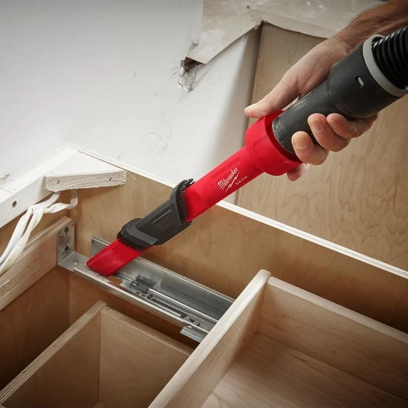 The Milwaukee AIR-TIP 3-in-1 Crevice and Brush Tool can easily be used in all areas of the jobsite. Its reversible brush