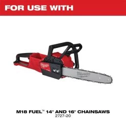 securely stores our M18 FUEL Chainsaw, M18 REDLITHIUM Battery Packs, the M18 & M12 Rapid Charger, and 1 Qt of Bar &
