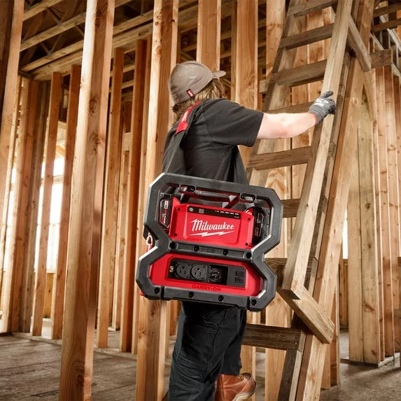 The MILWAUKEE M18 CARRY-ON 3600W / 1800W Power Supply provides the most versatile 15A power for the jobsite, with less hassle. The power supply delivers 3600 starting watts,1800 running watts of pure sine wave inverter energy with longer sustained power. Users can run demanding trade tools, such as table saws, pancake compressors, or even pipe threaders. Power everything from 15A tools to your sensitive electronics, with instant start technology and better-sustained power. With a combination of any MILWAUKEE M18 batteries, users can power any 15A products and minimize hassles typically associated with power on the jobsite. The quiet, compact, emissions-free cordless Power Supply can operate indoors and underground, including confined spaces, scissor lifts, and utility carts. The lightweight and compact design of the CARRY-ON Power Supply allows users to have power by their side, instead of relying on gas alternatives and extension cords. The M18 CARRY-ON can only run on 4 batteries. Users can charge M18 Batteries simultaneously at a 3A standard rate when the product is not in discharge mode. Prevent battery theft with lockable battery bays using a padlock (not included). Charge your sensitive electronics faster, with USB-C PD and USB-A ports. The temporary power supply is compatible with the MILWAUKEE Shoulder Strap (sold separately), reducing fatigue during transportation on and off the jobsite.