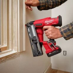 The Milwaukee M18 FUEL 16 Gauge Angled Finish Nailer Kit provides peak productivity at your jobsite, delivering unmatched