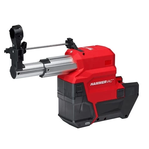The Milwaukee HAMMERVAC 1 in. Dedicated Dust Extractor (2912-DE) features an inline design engineered to connect directly to and be power by the M18 FUEL 1 in. SDS Plus Rotary Hammer (2912-20 and 2914-20). Utilizing the same replaceable certified HEPA filter as other HAMMERVACS; which filters 99.97% of all particles greater than 0.3µm; means more compatibility on the jobsite. The built-in adjustable depth stop and ruler offers easy and precise adjustments. The dust extractor allows full OSHA Table One Compliance when drilling up to 1 in. diameter and 6 in. in depth. This extractor features our AUTOPULSE Filter Cleaning Mechanism that automatically cleans the filter after each use; ensuring more effective drilling for longer before needing to empty the dust box. The dust box comes equipped with a vacuum port that allows for suctioning out the dust with a large vacuum or dust extractor (such as the 8960-20) instead of dumping the dust out into a trash receptacle; ensuring minimal exposure.