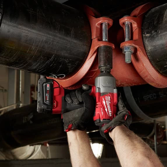 Our M18 FUELâ„¢ high torque impact wrench with friction ring eliminates the need to use a pneumatic tool for those stubborn and rusted bolts by delivering 1,000 ft./lbs. of fastening torque and 1,400 ft./lbs. of nut-busting torque. With 2X faster removal speed, our users will be able to get the job done faster and be more productive throughout their day. By providing the industry’s most compact cordless high torque impact wrench at 8.39 in. length, this tool allows for more access in tight spaces. 4-Mode drive control with bolt removal mode gives our users the most control over their fasteners. Bolt removal mode gives our users more control when removing fasteners by slowing to 750 RPM once the fastener has been busted loose. Our tool offers quick, tool-free socket changes with a 1/2 in. friction ring anvil. A premium rubber overmold material gives our users ultimate comfort during prolonged use while lasting longer against corrosive materials. Our M18 REDLITHIUMâ„¢ XC5.0 Extended Capacity Resistant Battery Packs included provide increased protection against oils, greases, and solvents.