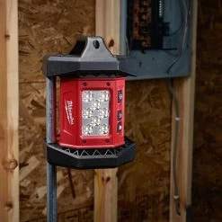 Powered by M18 batteries; the Milwaukee 2361-20 M18 LED Flood Light provides best in class light output; functionality and durability. Using 8 high quality LEDs; the flood light provides up to 1;300 lumens. A compact and lightweight roll cage design and replaceable; impact resistant lens ensure the light can stand up to the toughest working conditions. The octagonal shape allows the light to be used at multiple angles while the multiple hanging features provide hands free use.