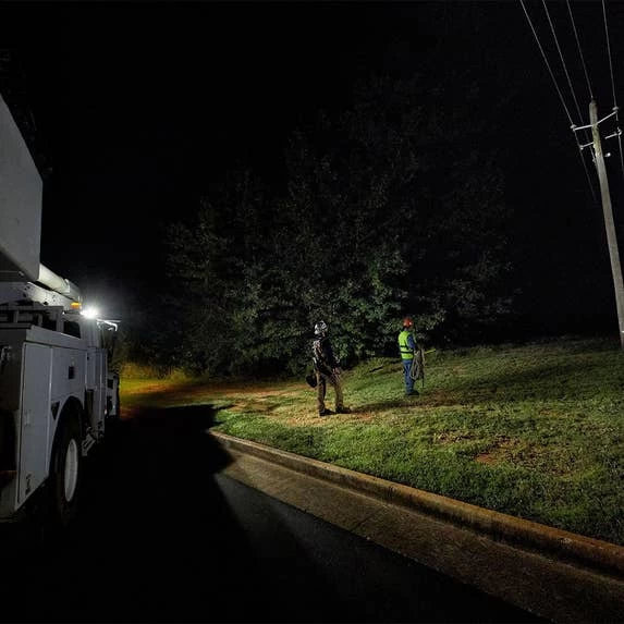 The MILWAUKEE M18 Utility Remote Control Search Light is the first of its kind, allowing Power Utility Lineman to