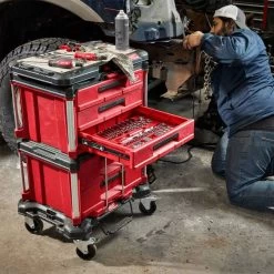 The MILWAUKEE PACKOUT 2-Drawer Tool Box has a 50lbs weight capacity and a locking security bar to padlock the drawers closed keeping them securely shut during transport. As part of the PACKOUT Modular Storage, the toolbox provides customized storage solutions for easy transportation and organization of tools and accessories. This portable toolbox with drawers is constructed with impact-resistant polymers, all-metal ball bearing slides, and metal reinforced corners for ultimate jobsite durability. The 2-Drawer Tool Box has Quick-Adjust Dividers to customize the drawer layout (Includes 1 set of dividers). The PACKOUT Modular Storage System is the industry’s most versatile and durable storage system.