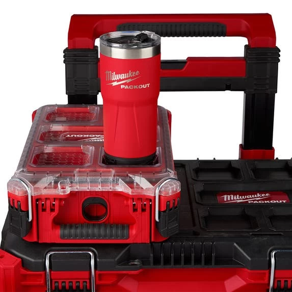 The PACKOUT 20oz Tumbler features twist and lock PACKOUT Connectivity so you can connect your tumbler to any MILWAUKEE