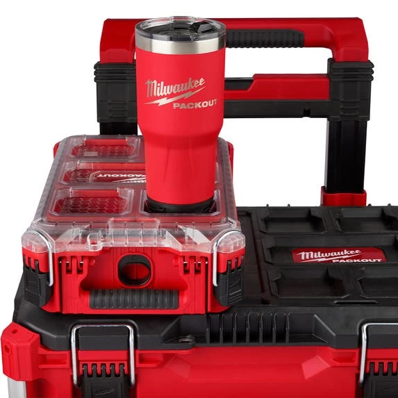 The PACKOUT 30oz Tumbler features twist and lock PACKOUT Connectivity so you can connect your tumbler to any MILWAUKEE