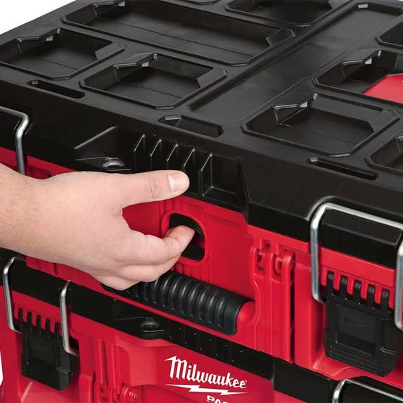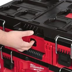 Part of the industry’s most versatile and most durable modular storage system, the Milwaukee PACKOUT tool box is constructed with impact resistant polymers and metal reinforced corners to provide up to 75lbs of weight capacity and ultimate durability in harsh jobsite conditions. Featuring an IP65 rated weather seal to keep out rain and jobsite debris, and integrated organizers bins, the Milwaukee PACKOUT tool box is the fully compatible with all Milwaukee PACKOUT modular storage products.