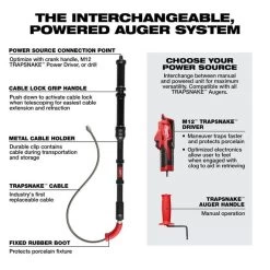 The MILWAUKEE® TRAPSNAKE™ 6 ft. Toilet Auger offers a breakthrough in protection, ease of use, and durability over every toilet auger that exists today. Milwaukee® toilet auger features several industry-firsts, including a fixed rubber boot for maximum porcelain protection, an integrated locking mechanism that holds the cable in place for easy telescoping extension, and replaceable cables to maximize the longevity of the tool. As part of the MILWAUKEE® TRAPSNAKE™ Porcelain Auger System, users can attach MILWAUKEE® TRAPSNAKE™ 6 ft. Toilet Auger to MILWAUKEE® M12™ TRAPSNAKE™ Driver, the first powered unit optimized for the challenges of porcelain fixtures. This Milwaukee® toilet snake delivers power and speed to work through tough clogs in tight traps but has optimized electronics that protect the fixture from the auger and allow the user to feel when engaged with a blockage.