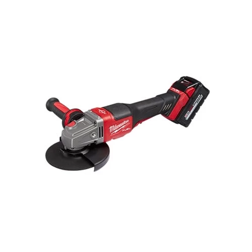 Our M18 FUEL 4-1/2” – 6” Braking Grinder; Paddle Switch; No-Lock two battery kit is our highest performing small angle grinder. It generates the power of a 13A corded grinder; brakes all accessories under 3 seconds; and has 6” grinding capacity.